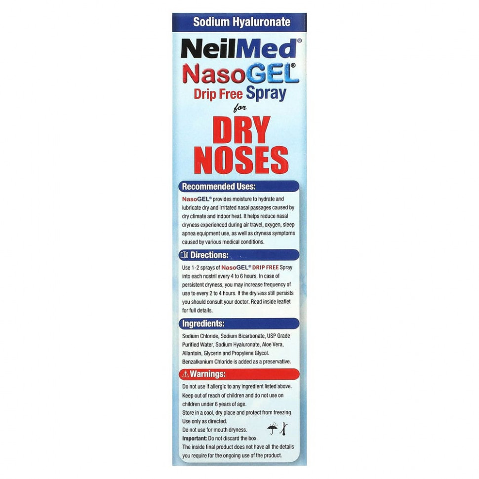 NasoGel® обеспечивает увлажнение сухих и раздраженных носовых проходов, вызванных сухим климатом и жарой в помещении. Он помогает уменьшить сухость слизистой носа, возникающую во время авиаперелетов,использования кислорода, оборудования для апноэ во сне, а также симптомы сухости, вызванные различными заболеваниями.