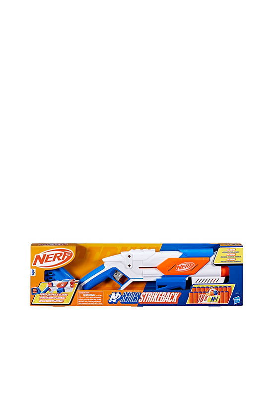 From the creators of the foam dart, the Nerf brand unleashes the next evolution in foam dart blasting with Nerf N Series N1 darts, delivering EXTREME ACCURACY, SPEED, and DISTANCE! The Nerf N Series Strikeback dart blaster features powerful snapback action! You can see and feel the cool snapback action when you pull the trigger!