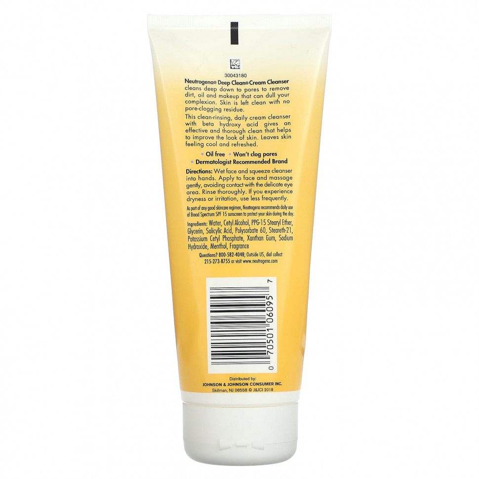 Крем-очищающий крем NeutrogenaⓇ Deep Clean® глубоко очищает поры, удаляя грязь, жир и макияж, которые могут сделать цвет лица тусклым. Кожа остается чистой, не забивает поры.