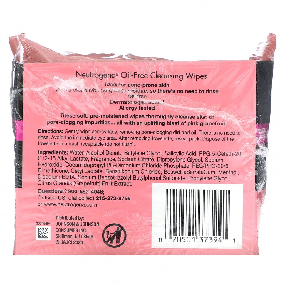 Эти мягкие, предварительно увлажненные салфетки тщательно очищают кожу от загрязнений, закупоривающих поры … с бодрящим ароматом розового грейпфрута.