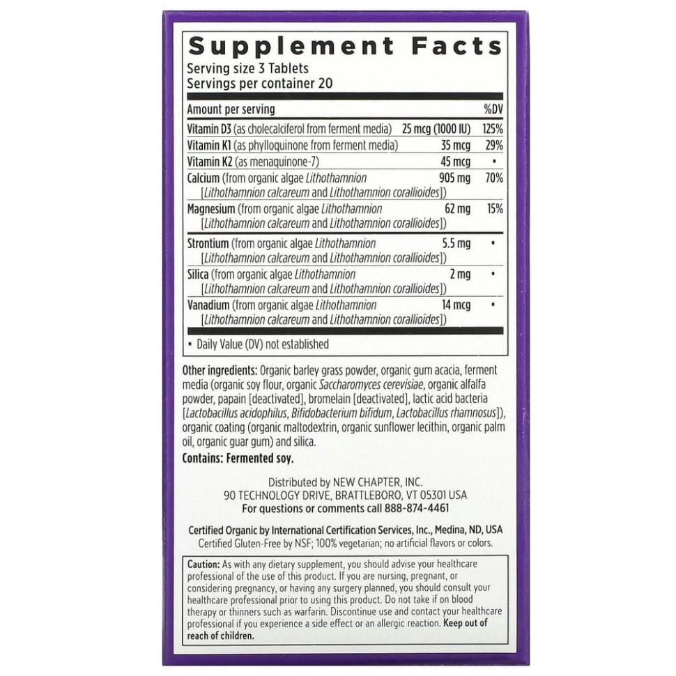 Идеальный состав: кальций, полученный из растений, выращенных в экологически чистых условиях, — это маленькие таблетки, которые легко глотать, с витамином K2 и ферментированным витамином D3, который доставляет кальций в кости.