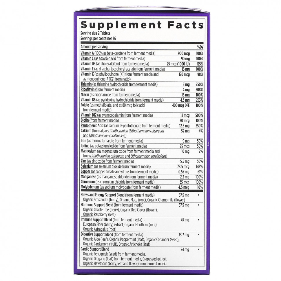 Комплексный состав для поддержания общего женского здоровья, а также удовлетворения особых потребностей организма с помощью питательных веществ для сердца, мозга, зрения, костей и груди. Добавка также помогает повысить стрессоустойчивость организма и поддерживать здоровое пищеварение с помощью всего лишь 2 таблеток в день.