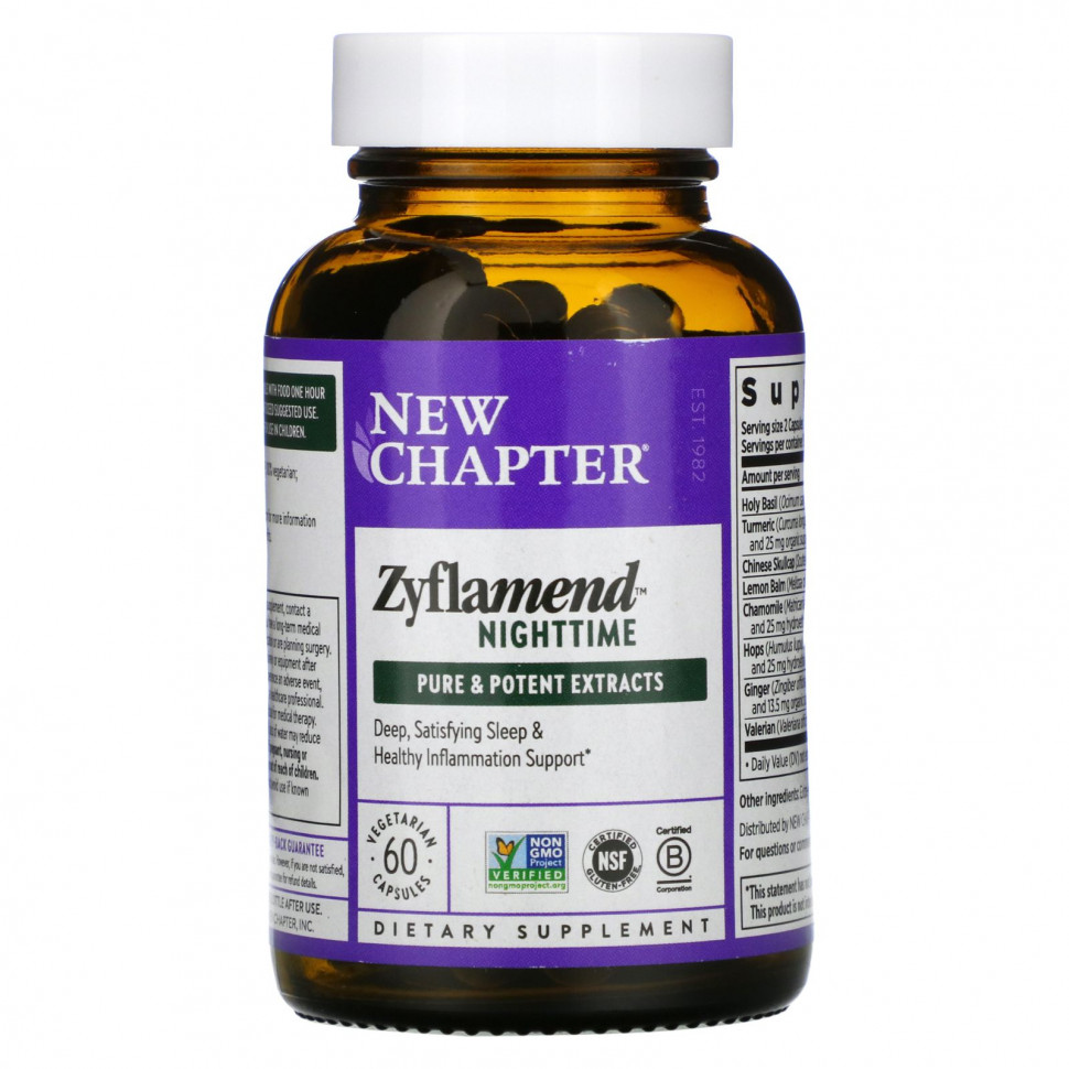 Zyflamend ™ Nighttime сочетает в себе несколько проверенных временем трав, включая ромашку, хмель и мелиссу, для безопасного и мягкого поддержания глубокого спокойного сна.