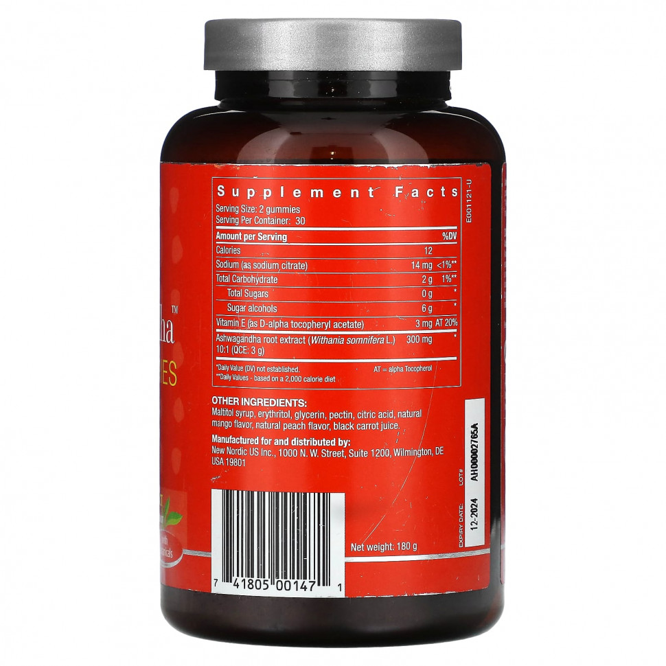 Веганские жевательные мармеладки Ashwagandha ™ от New Nordic — это веганские жевательные мармеладки со вкусом манго и персика без сахара и с высокой концентрацией чистого экстракта ашваганды. Ашваганда используется в качестве адаптогена в Аюрведе, помогая справляться с умственным и физическим стрессом.