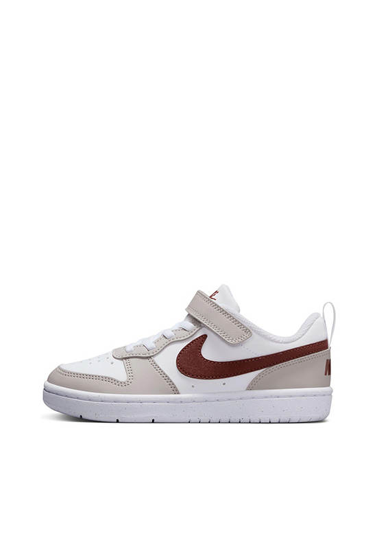 Nike Court Borough Recraft Little Kids’ Shoes. Made for all-day adventures, these «recrafted» sneakers update a classic with durable synthetic leather, stretchy elastic laces and a quick-to-secure strap. A redesigned toe box and midfoot help give little feet extra wiggle room. Plus, we added a little sparkle to the Swoosh logo to help your kiddo shine.