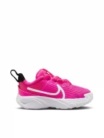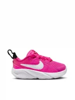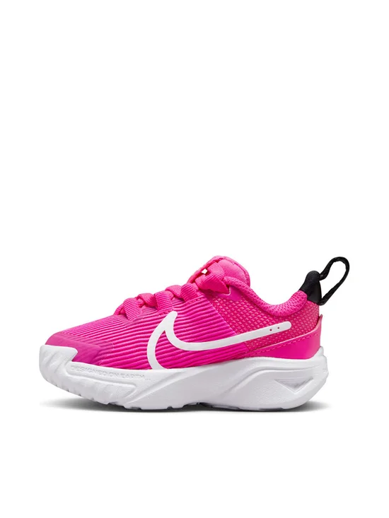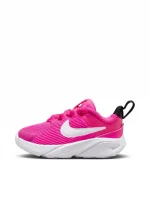 Get out the door in a flash with the Star Runner from NIKE. Loops on the tongue and heel make it easy to open the shoe up wide so little star runners can step in and get going. Soft cushioning in the midsole provides a comfortable, springy feel so 1 more round, lap and turn is always an option. The tread grabs at pavement, grass and gravel to give them extra grip while a rubber-wrapped toe toughens up the construction so they can go further in the same pair of Star Runners.