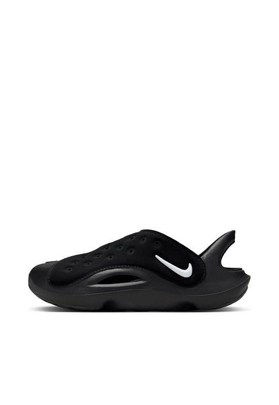 Help your little explorer stay ready for adventure with the Nike Aqua Swoosh. Soft fabric up top and plush foam underfoot help make for comfortable steps while a heel strap secures the fit. Plus, drainage holes on the upper and cutouts along the sides help make these ideal for splash pads, pool days and other water activities.