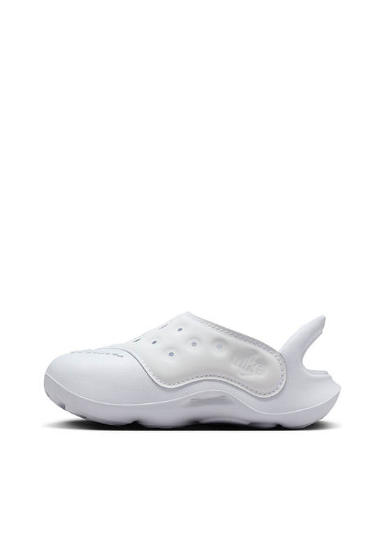 Help your little explorer stay ready for adventure with the Nike Aqua Swoosh. Soft fabric up top and plush foam underfoot help make for comfortable steps while a heel strap secures the fit. Plus, drainage holes on the upper and cutouts along the sides help make these ideal for splash pads, pool days and other water activities. Where will your little one play next?