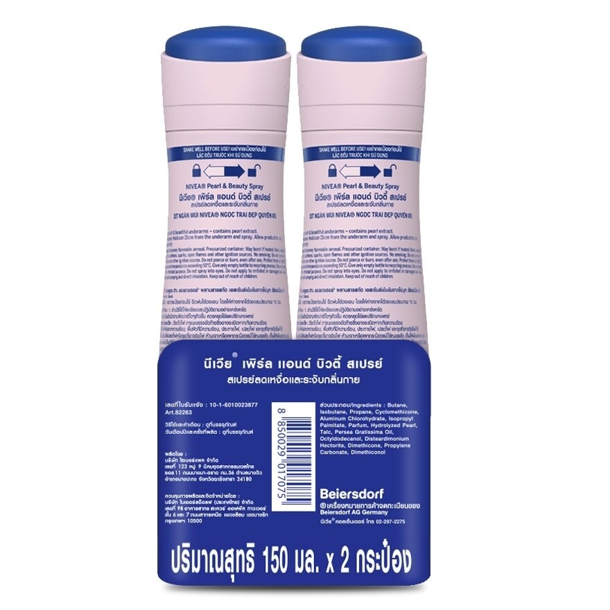 นีเวีย เพิร์ล แอนด์ บิวตี้ สเปรย์ บอกลารักแร้ดำด้วยสเปรย์สูตรอ่อนโยนพร้อมสารบำรุงธรรมชาติจากสารสกัดไข่มุก ปรนนิบัติผิวใต้วงแขนให้สวยเรียบเนียนและเปล่งประกายอย่างเป็นธรรมชาติ ด้วยสารสกัดจากไข่มุก และอาหารผิว10 ชนิด ฟื้นบำรุงถึงเซลล์ผิวคล้ำเสียปรนนิบัติผิวใต้วงแขนให้สวยเรียบเนียนและเปล่งประกายอย่างเป็นธรรมชาติ