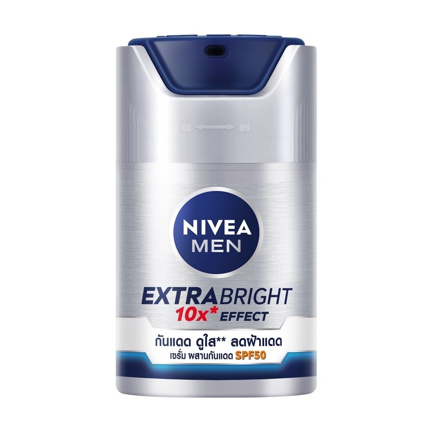 Nivea Men Extra White Serum SPF50 For brighter, even looking skin with more refined pores. They penetrate the skin deeply and quickly handle 10 men's skin problems. Apply for face and neck. Carefully read the How to Use section and adhere to it. Stop use if irritation develops or an allergic reaction occurs.