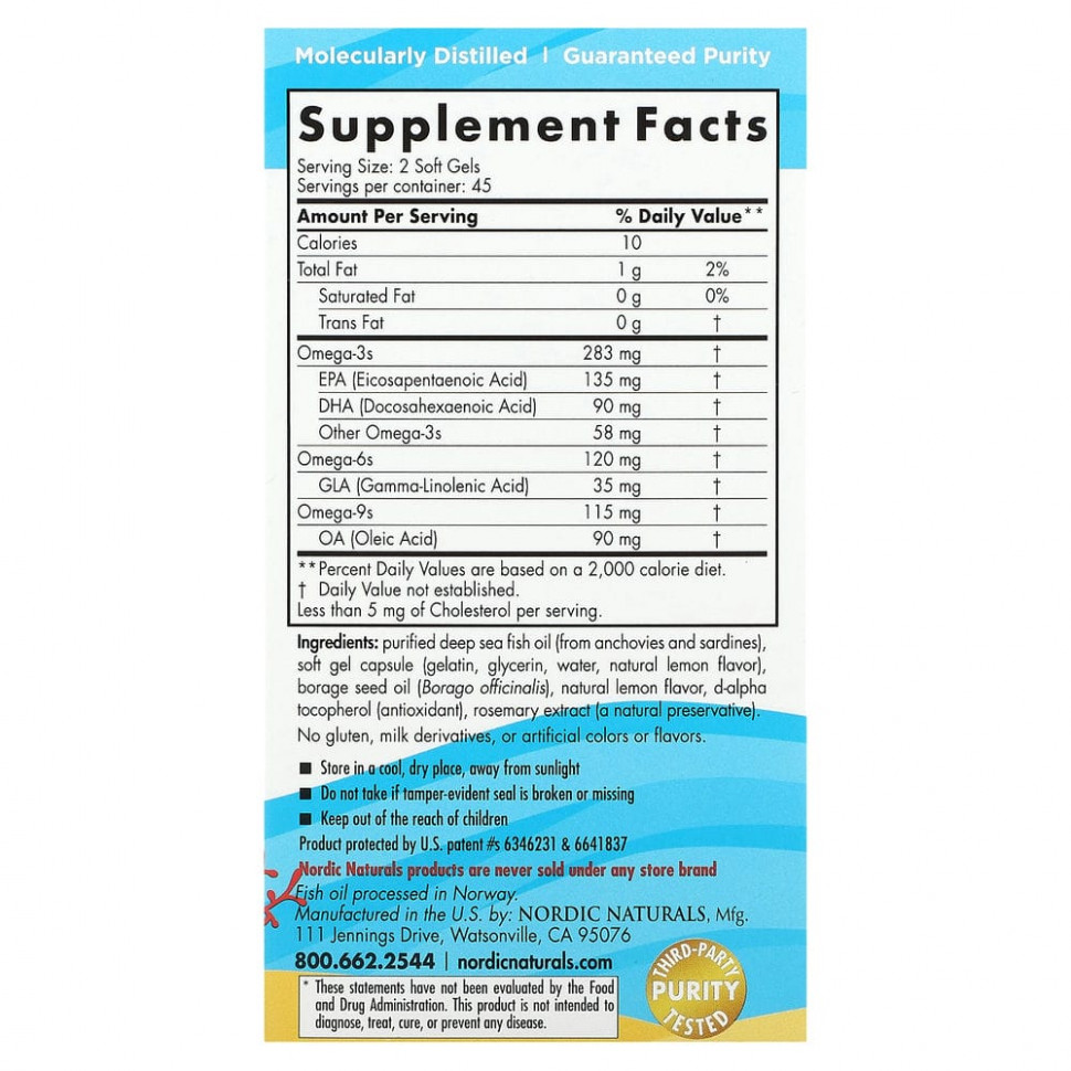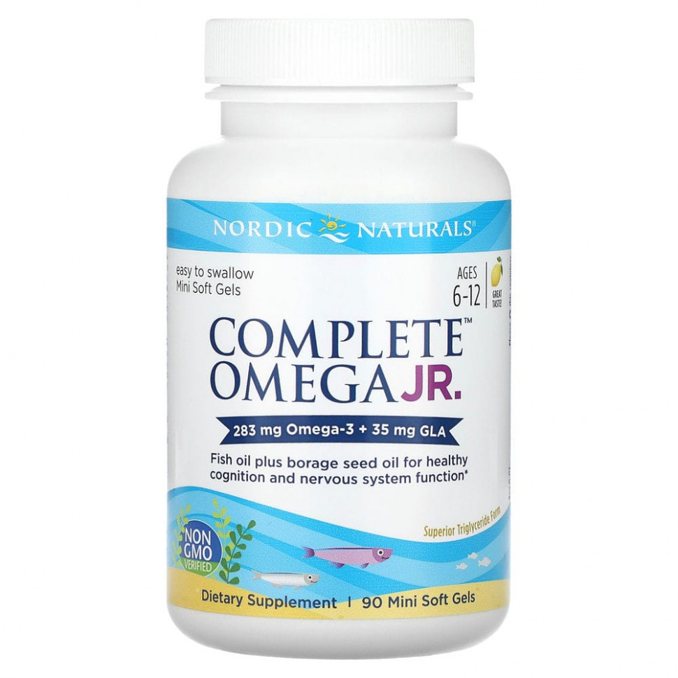 Complete Omega™ для детей сочетает в себе омега-3 ЭПК и ДГК из рыбьего жира с ГЛК из масла семян бурачника для поддержания здоровья нервной системы, что способствует нормальному социальному, эмоциональному и поведенческому развитию детей в возрасте от 6 до 12 лет. Как и все наши продукты, содержащие рыбий жир, добавка Complete Omega для детей произведена на основании научных исследований, а весь процесс ее изготовления компанией Nordic Naturals гарантирует предоставление безопасного, экологичного, исключительно свежего и чистого продукта.