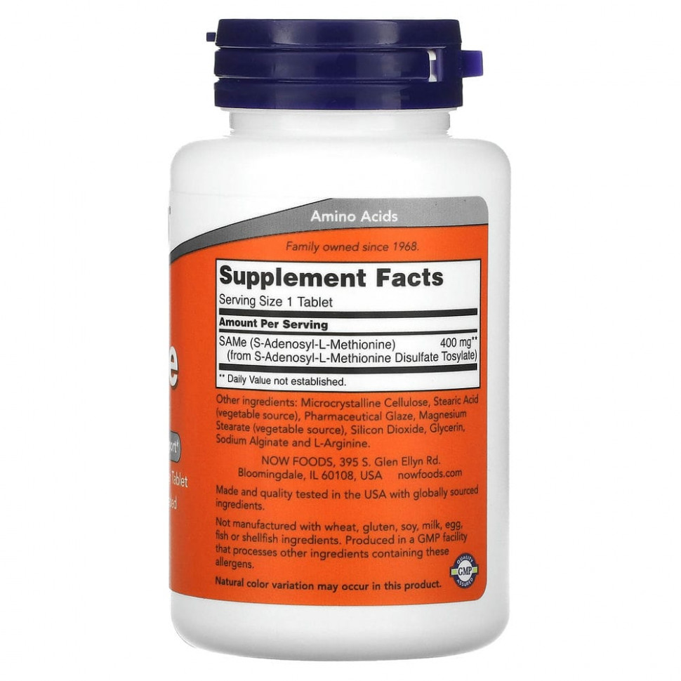 SAMe (S-аденозилметионин), соединение, естественное для организма, является компонентом многих биохимических реакций, в том числе тех, которые влияют на биохимию мозга и здоровье суставов. Многочисленные исследования показали, что SAMe может помочь облегчить временные незначительные боли, возникающие в результате перенапряжения. Кроме того, поскольку SAMe также необходим для синтеза нейромедиаторов, он играет важную роль в поддержке настроения. SAMe от NOW® имеет кишечнорастворимое покрытие, благодаря чему он очень хорошо переносится и защищен от разложения.
