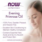 Решение: 100 % чистое масло примулы вечерней — это полностью натуральное растительное масло. Используется в качестве растительного лекарственного средства при различных заболеваниях. Масло примулы вечерней содержит незаменимые жирные кислоты, которые поддерживают ткани организма, в том числе кожу. В сочетании с цинком масло примулы вечерней может быть полезно для улучшения цвета лица. Каждый 1 мл масла содержит 80–100 мг ГЛК — незаменимой жирной кислоты, которая может питать и защищать здоровые клетки кожи. 100 % чистое масло примулы вечерней получают из семян примулы вечерней. Это масло отжимается при низкой температуре, чтобы получить чистое натуральное масло первого отжима без использования растворителей, наполнителей или консервантов.