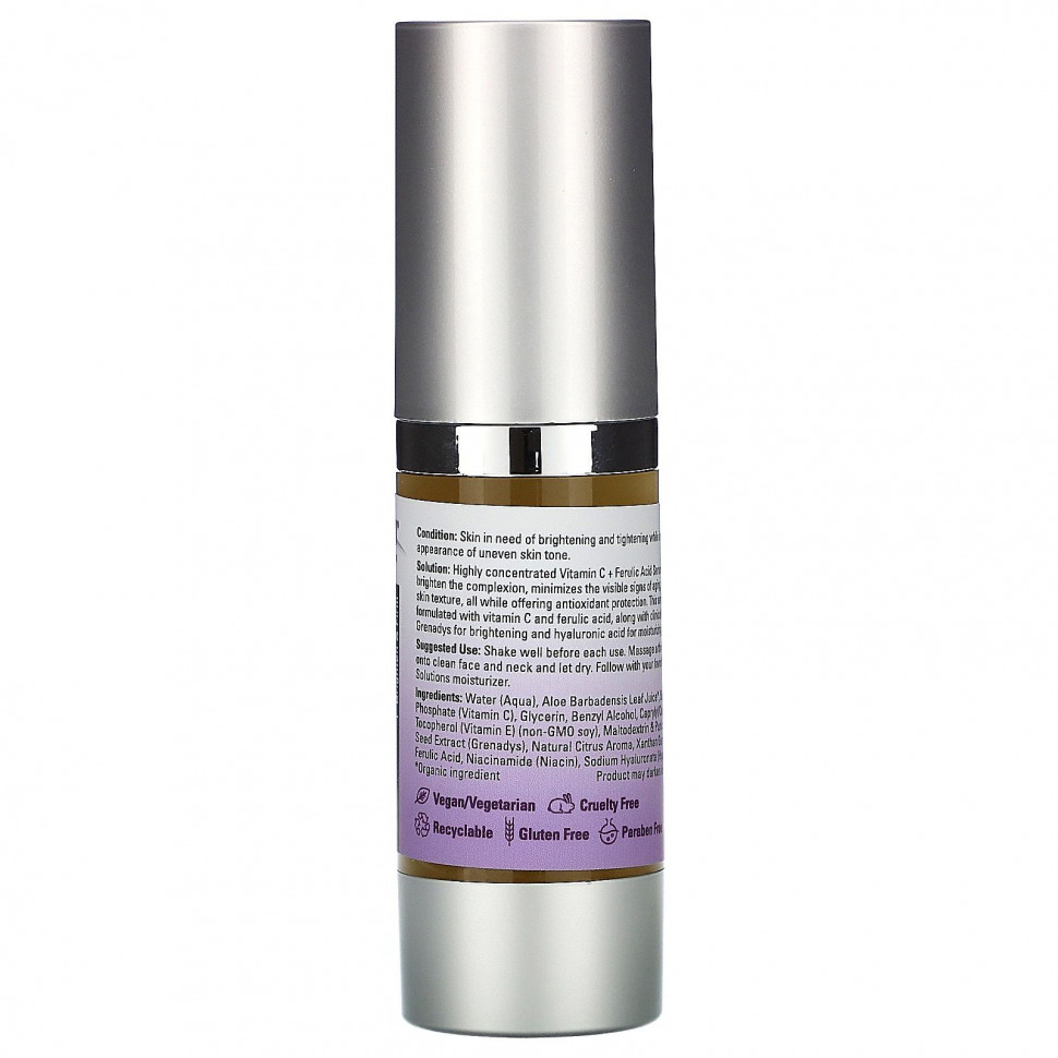 Решение. Высококонцентрированная сыворотка с витамином C и феруловой кислотой эффективно помогает осветлить цвет лица, минимизирует видимые признаки старения и улучшает текстуру кожи, обеспечивая при этом антиоксидантную защиту. Эта сыворотка содержит уникальное сочетание витамина C и феруловой кислоты, а также клинически протестированные гранат для осветления и гиалуроновую кислоту для увлажнения.