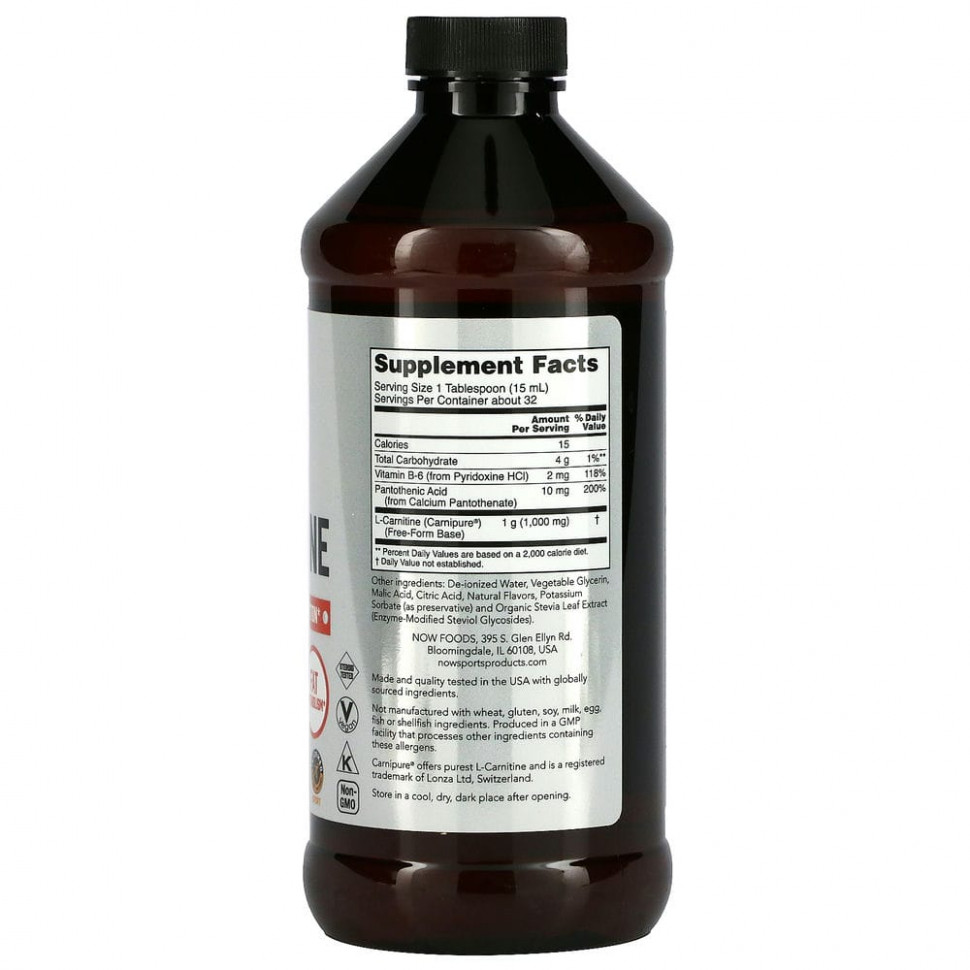 Жидкий L-карнитин от NOW обладает всеми полезными свойствами карнитина и представлен в хорошо усвояемой жидкой форме. Карнитин является незаменимой аминокислотой, которая помогает поддерживать общее состояние здоровья, способствуя передаче групп жирных кислот в митохондриальную мембрану с целью производства клеточной энергии. В естественном виде он содержится в красном мясе и других продуктах животного происхождения, но мы рекомендуем получать эту превосходную аминокислоту из добавок. Данный L-карнитин представлен в самой чистой форме, прошел клинические испытания и подходит для вегетарианцев (не содержит ингредиентов животного происхождения).