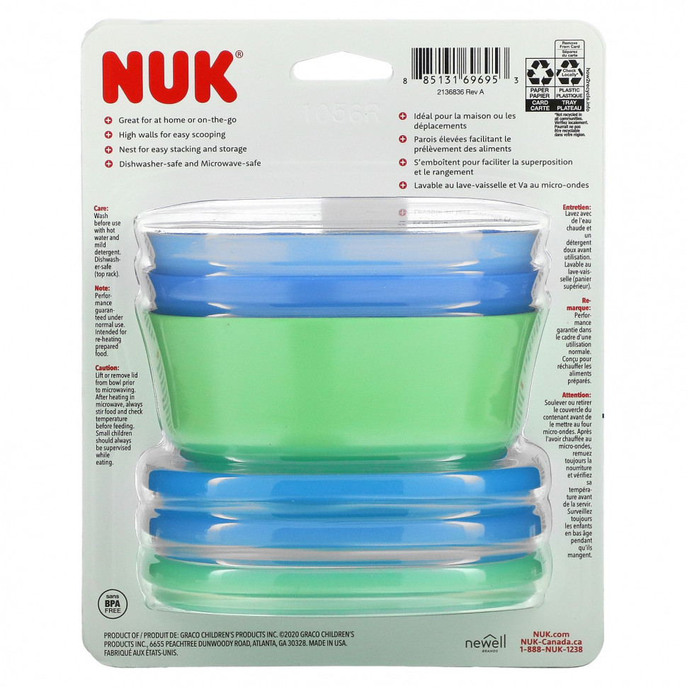 Миски-штабелеры NUK идеально подходят для любого этапа кормления: от детского питания до закусок для малышей. Высокие стенки и изогнутое дно облегчают черпание еды — идеально подходит для кормления как родителей, так и ребенка. Эти удобные для путешествий миски поставляются с подходящими герметичными крышками и могут легко перемещаться из сумки для подгузников в детский сад или где угодно. Подходит для разогрева блюд в микроволновой печи, а на верхней полке можно мыть посуду для быстрой и удобной уборки. Кроме того, миски и крышки не содержат бисфенола А для полного спокойствия.