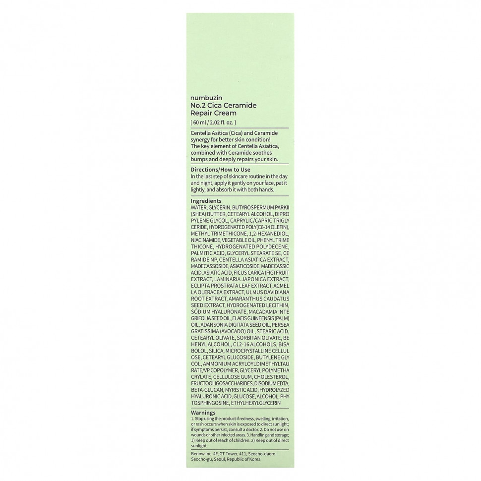 Numbuzin, Восстанавливающий крем с керамидами Cica, № 2, 60 мл (2,02 жидк. Унции)