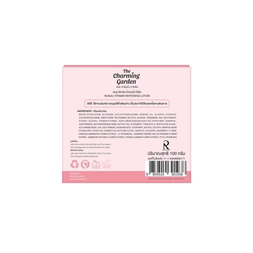 Numju Vitamin Whitenting Lotion Contains Jasmine, Organic Shea Butter, Hibiscus. Vitamin B3, Meadowsweet, Daisy, and Glyceryl Ascorbate. Deep nourishment with skin vitamin lotion, 3 times more concentrated than other lotions. Helps to adjust the condition of the body uniform white Smooth, natural looking skin reduce stretch marks Easy to apply, absorbs quickly, does not stick to the hair. Solve the problem of knees, elbows and dark armpits Long-lasting scented lotion Can be applied only to the area Helps to whiten skin cells clearly. Apply on face and caressed all over the body Regularly all day.