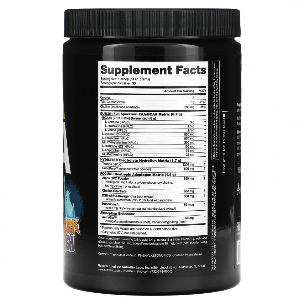 Альфа-EAA — это эффективно дозированная формула незаменимых аминокислот, которая не похожа ни на один другой аминокислотный продукт, представленный сегодня на рынке. Alpha EAA не только включает матрицу полного спектра EAA, содержащую 8,2 г EAA и 6 г ферментированных BCAA, но мы также добавили комплекс для фокусировки и гидратации. Именно эта матрица фокусировок действительно выделяет этот продукт и отличает его от любых доступных добавок на основе аминокислот. Наша фокусная матрица состоит из комбинации самого популярного в мире адаптогена, ашваганды KSM-66 и трех наиболее эффективных ноотропов, Alpha-GPC, VitaCholine и гуперзина A. Чтобы завершить эту новую формулу и улучшить ее еще больше, мы содержит таурин и CocoPure для поддержания водного баланса и AstraGin для увеличения усвоения и усвоения аминокислот.