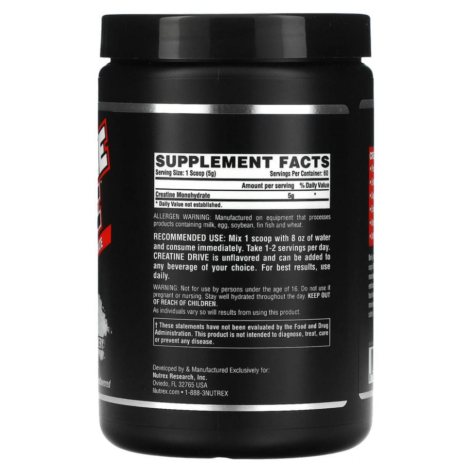 Ежедневное потребление 1–2 порций Creatine Drive™ быстро обеспечивает ваши мышцы чистым моногидратом креатина, что способствует росту мышечной массы, улучшению спортивных результатов и способности переносить более длительные и интенсивные тренировки, а также заметно увеличивает силу. Безопасность и полезные свойства моногидрата креатина были тщательно изучены.