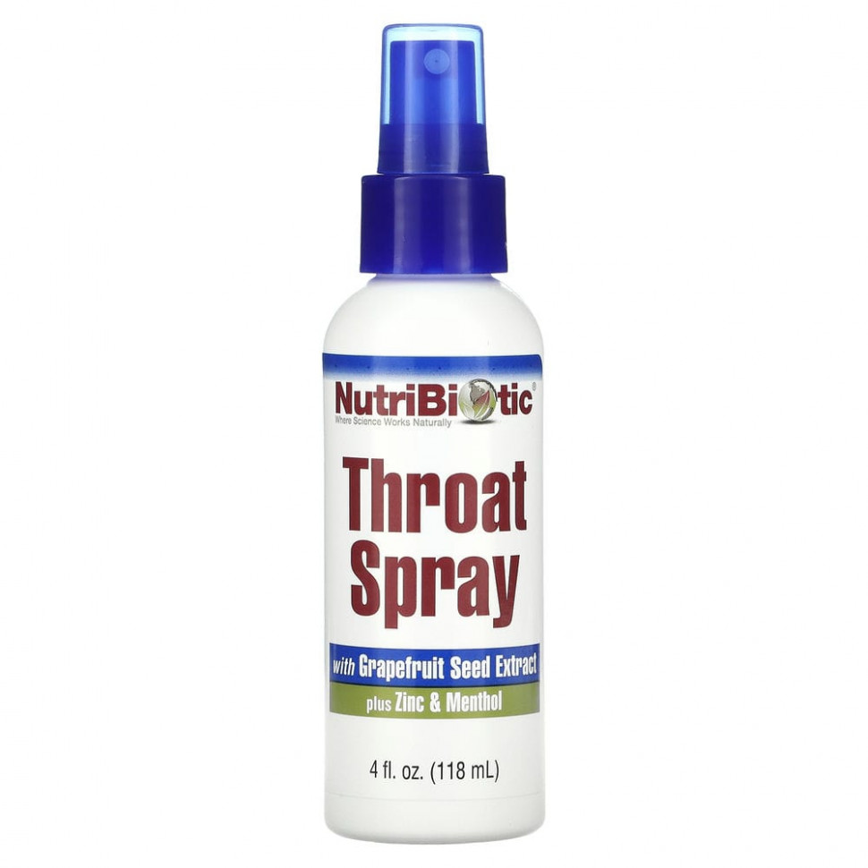 Спрей для горла от NutriBiotic с Citricidal (экстрактом косточек грейпфрута), цинком и ментолом помогает поддерживать здоровье горла и полости рта.