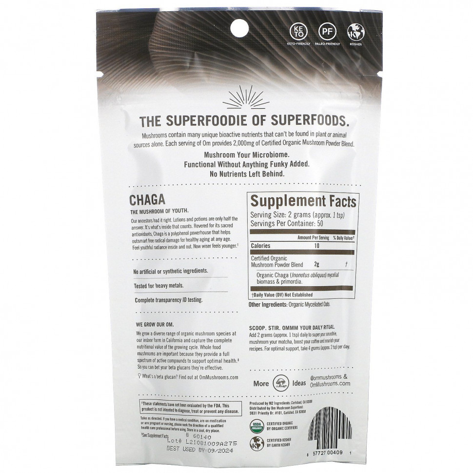 Грибы содержат множество уникальных биоактивных питательных веществ, которые невозможно найти только в источниках растительного или животного происхождения. Каждая порция Om содержит 2000 мг смеси сертифицированного органического грибного порошка.