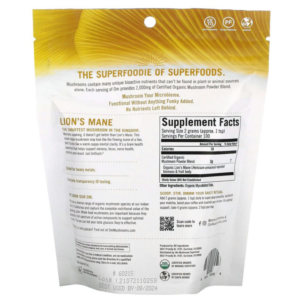 Грибы содержат множество уникальных биоактивных питательных веществ, которые невозможно найти только в источниках растительного или животного происхождения. Каждая порция Om содержит 2000 мг смеси сертифицированного органического грибного порошка.