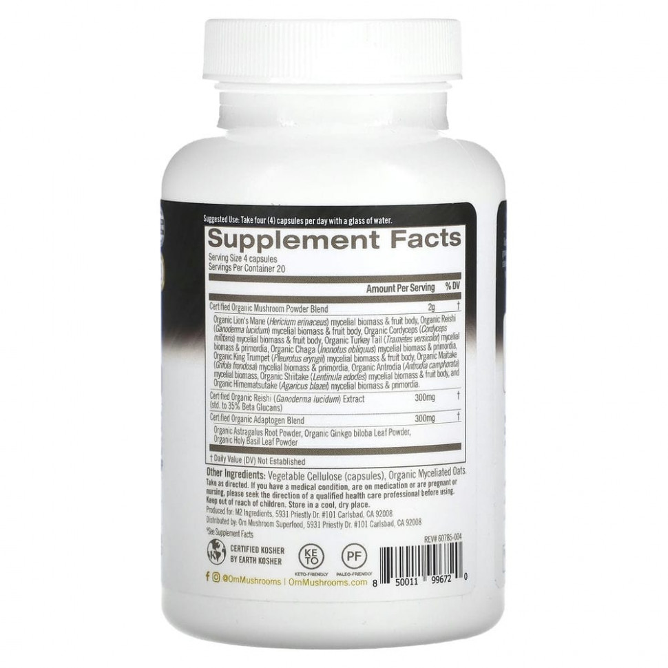 Зарядите свое ежедневное здоровье с помощью этой тщательно подобранной смеси 10 видов выращенных в США цельных грибов в порошке, а также нашего запатентованного экстракта цельных продуктов рейши, стандартизированного до 35% бета-глюканов. В состав также входят растительные адаптогены, которые помогают справляться со случайным стрессом, воспалениями и поддерживать иммунитет, когнитивное здоровье и уровень энергии. Это мощная основная смесь для яркого здоровья.