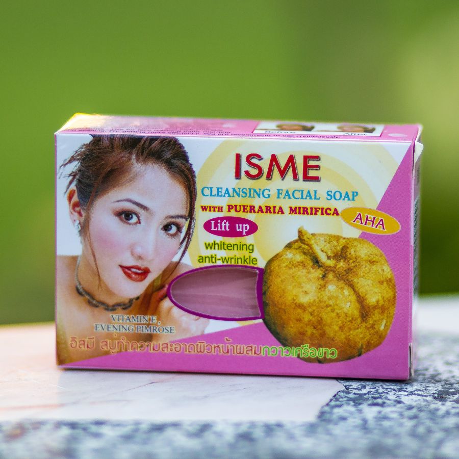 Все перечисленные свойства лечебного растения тайский производитель Isme практично применил в своем мыле Isme Cleansing Facial Soap. Оно предназначено специально для умывания лица, помогая ухаживать за увядающей или проблемной кожей, а также решая проблему излишней пигментации.