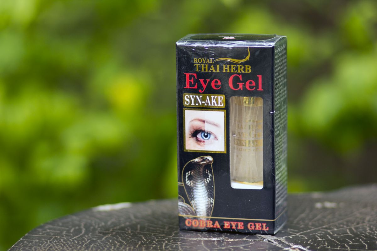 Пептиды змеиного яда Syn-Ake — искусственный аналог природного вещества, вырабатываемого организмом опасных пресмыкающися, обладающий эффектом «ботокса без уколов». Инъекции часто парализуют мимику, превращая лицо в маску, змеиный яд лишь замедляет передачу импульса, мягко расслабляя мышцы и препятствуя их непроизвольному сокращению. Такое действие позволяет достичь впечатляющих результатов в области уменьшения глубины «разломов» в домашних условиях, обеспечивает повышение общей упругости, восстановление ровного и сияющего тона. Дополнительно формула геля обогащена витаминами и травяными экстрактами, что позволяет заботиться о красоте тона, отсутствии отечности, сухости и раздражений.