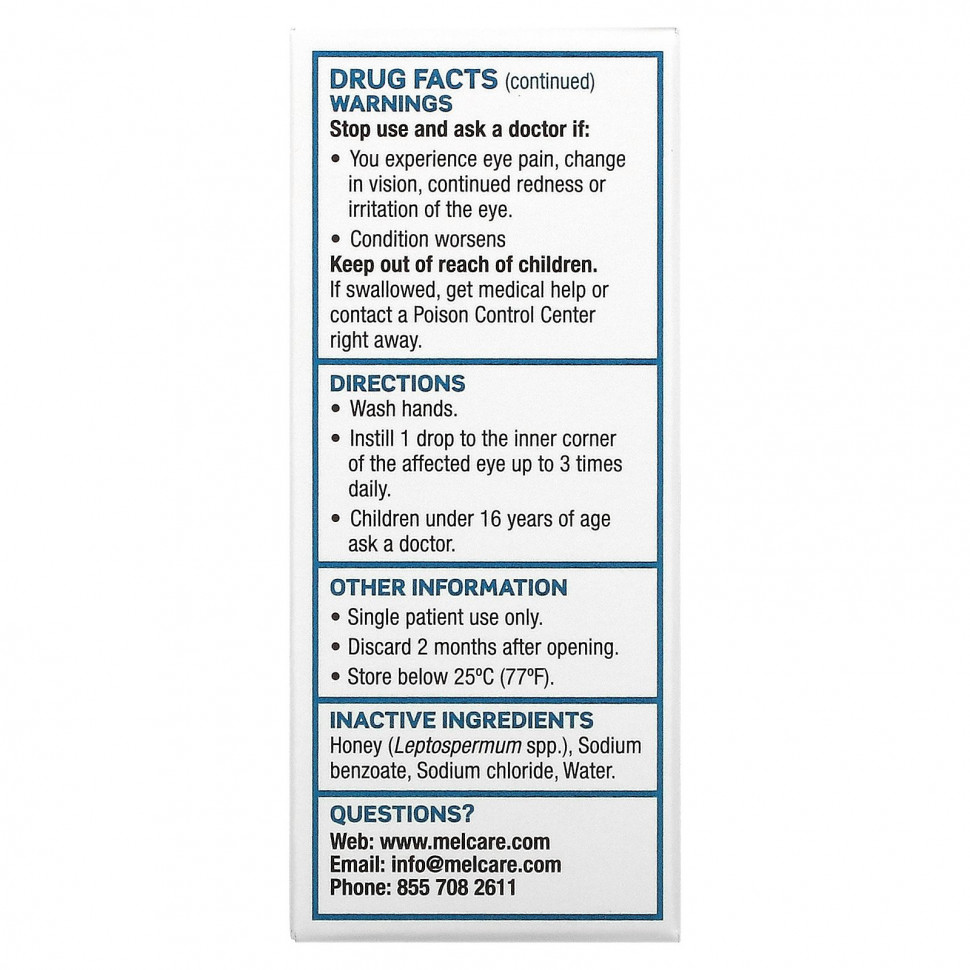 Капли для сухих глаз Optimel® Manuka + также содержат запатентованные виды Leptospermum фармацевтической степени чистоты. мед (165 мг / г) в качестве вспомогательного вещества. Для использования в качестве дополнительной терапии и для гигиены век.