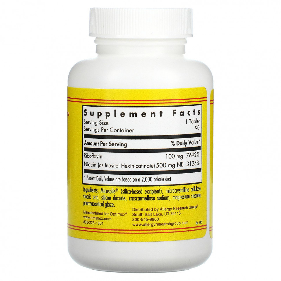 Специально разработанная комбинация витаминов В-2/В-3 с высокой эффективностью, содержащая 100 мг рибофлавина и 500 мг ниацина (инозитол гексаникотината) в каждой таблетке.