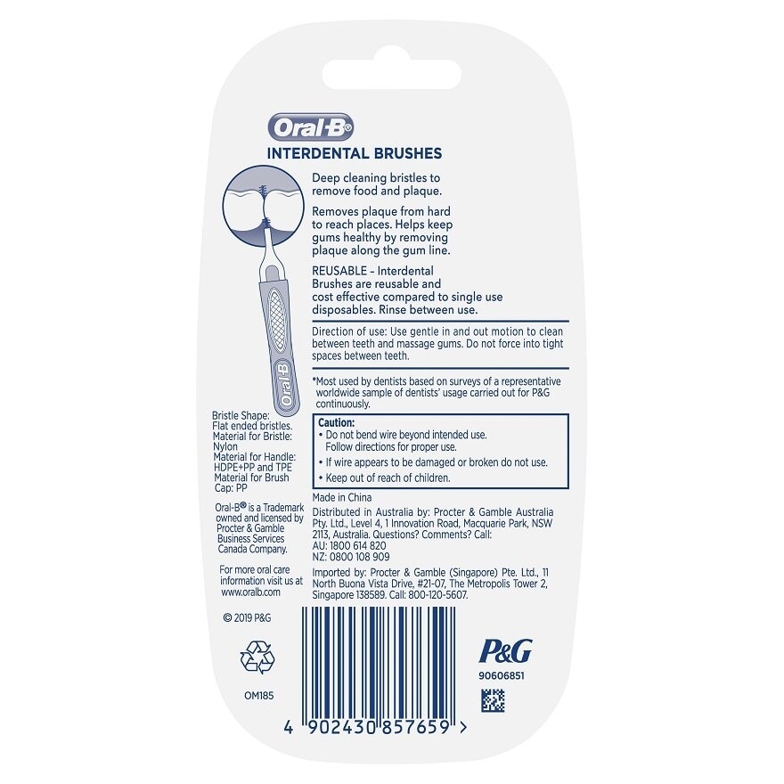 Oral-B Interdental Brushes 10's Deep Cleaning bristles to remove food and plaque. Removes plaque from hard to reach places. Helps keep gums healthy by removing plaque along the gum line. — interdental brushes are reusable and cost effective compared to single use disposables