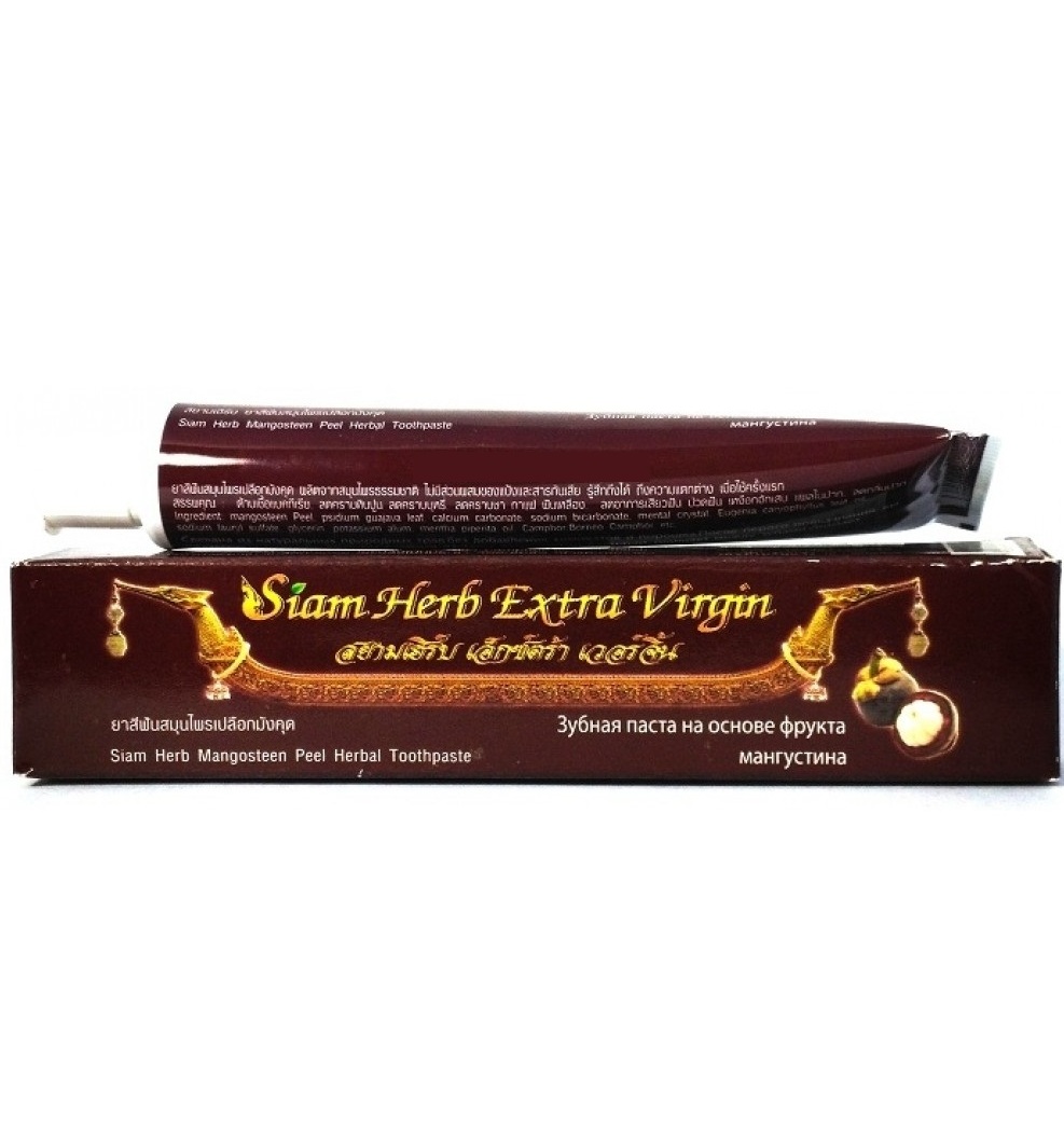 Зубная паста с мангустином/Toothpaste with mangosteen. Siam Herb Extra Virgin 40 гр для бережной чистки зубов и десён.