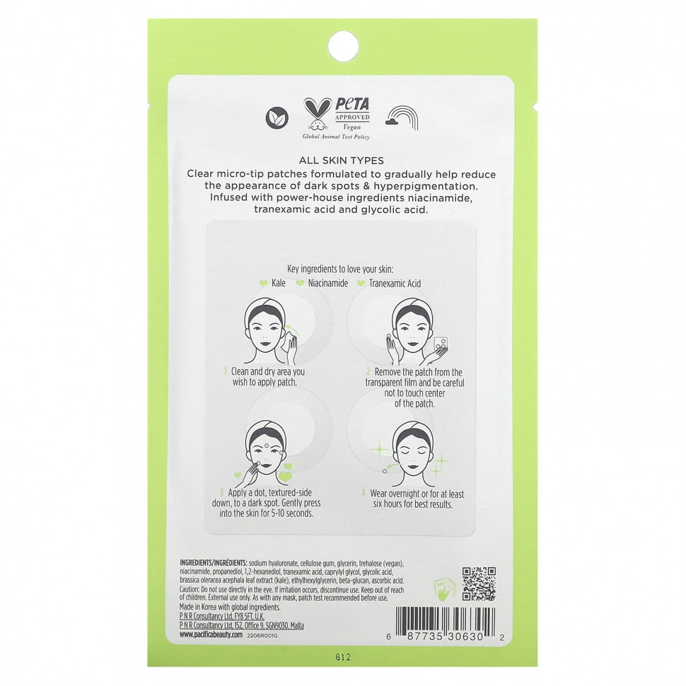 Прозрачные патчи с микровыступами помогают постепенно уменьшать появление пигментных пятен и гиперпигментацию. Содержит такие мощные ингредиенты, как никотинамид, транексамовая кислота и гликолевая кислота.