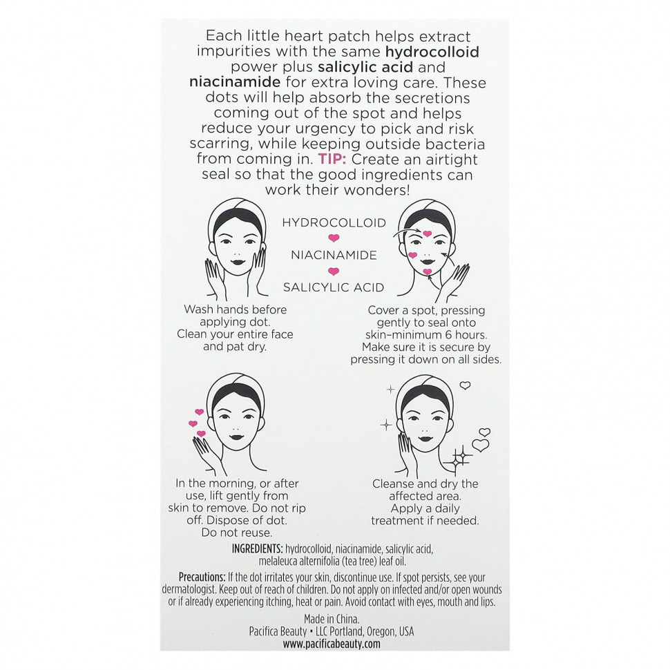 Каждая небольшая повязка на сердце помогает извлекать загрязнения с такой же гидроколлоидной силой, плюс салициловая кислота и ниацинамид для более нежного ухода. Эти точки помогут впитывать выделения, выходящие из пятна, и уменьшают риск возникновения рубцов, предотвращая попадание посторонних бактерий. СОВЕТ. Создайте герметичную пленку, чтобы полезные ингредиенты могли творить чудеса!