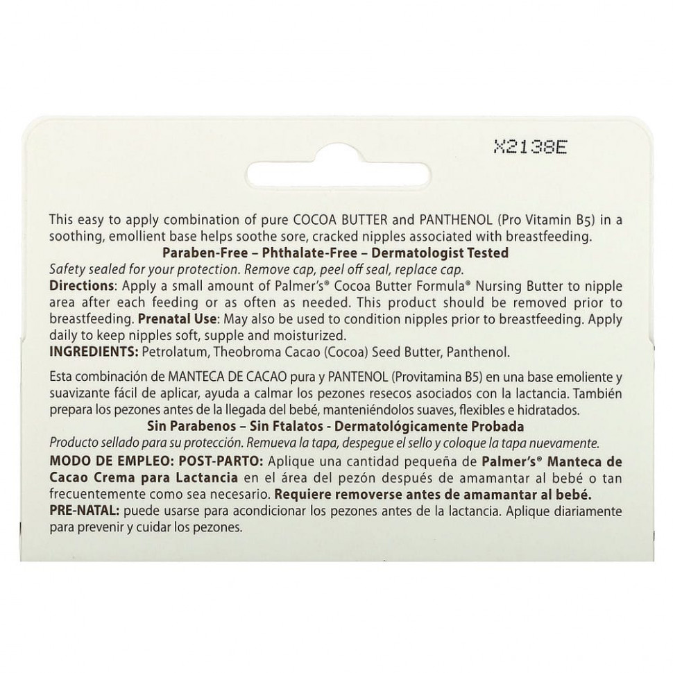 Эта простая в применении комбинация чистого какао-масла и пантенола (про-витамин B5) на успокаивающей основе помогает успокоить воспаленные и потрескавшиеся соски, связанные с грудным вскармливанием.
