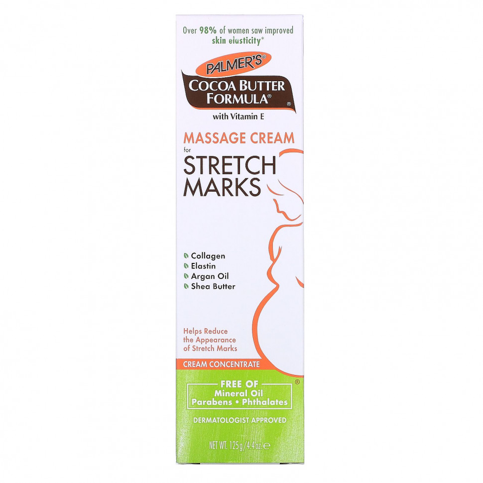 Массажный крем Palmers повышает эластичность кожи и снижает проявление растяжек. Чистое масло какао и масло ши, натуральные масла, коллаген, эластин и лютеин заботятся об увлажненности кожи и ее наполнении питательными веществами на 48 часов, что позволяет коже лучше растягиваться. Широко рекомендуется для применения для предотвращения растяжек во время беременности или колебаний веса. Эта концентрированная формула идеальна для зон, склонных к растяжкам, например, живот, внешняя и внутренняя часть бедер и бюст.