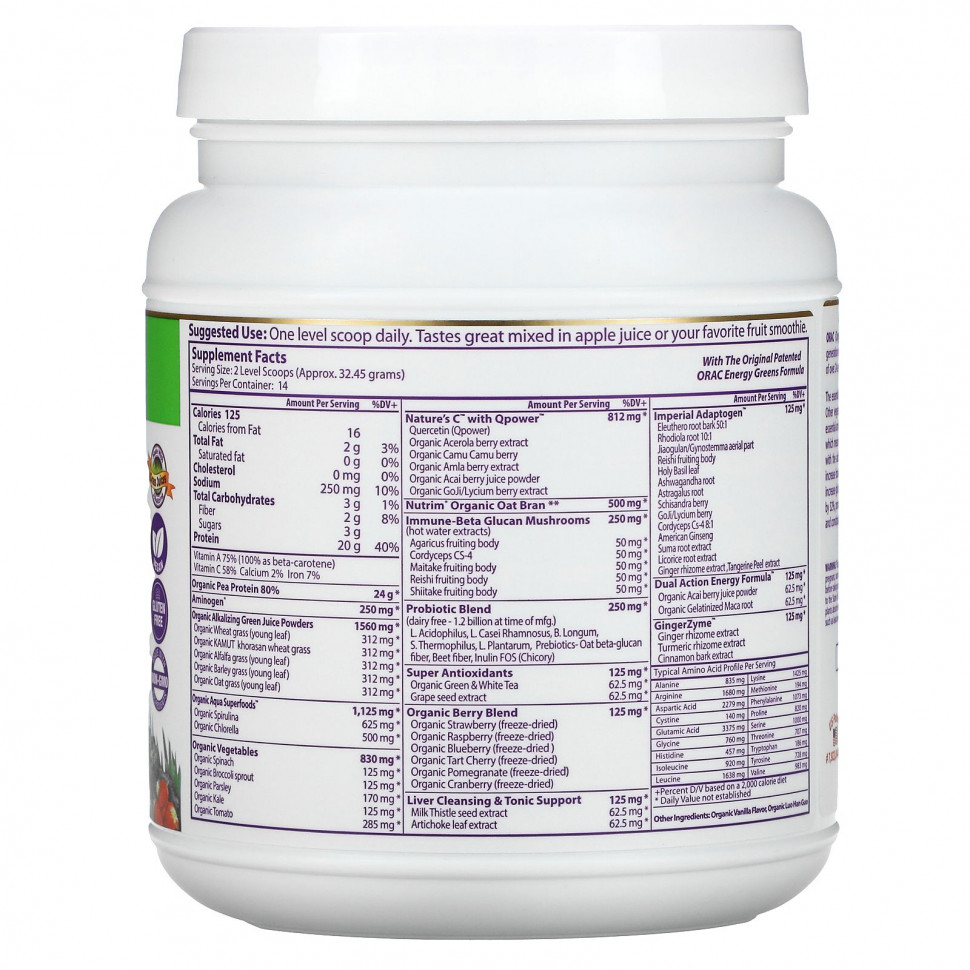Протеин и зелень от ORAC Energy® — это суперфуды нового поколения. Всего одна порция содержит 20 г белка, обладает антиоксидантной способностью более чем 24 порций фруктов и овощей, а общий показатель ORAC (показатель способности поглощать свободные радикалы) превышает 40 000.