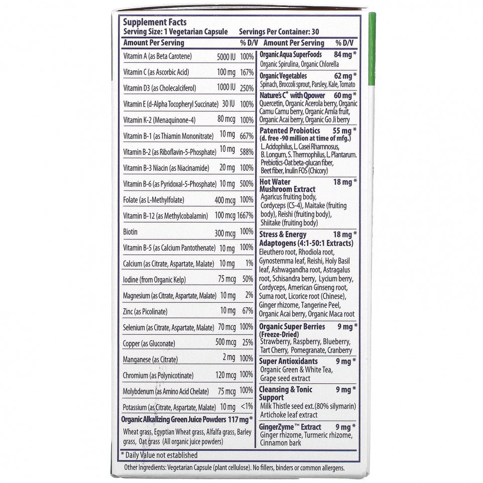 Наша мультивитаминное средство с суперфудами премиум-класса содержит такие адаптогенные экстракты высочайшего качества, как родиола, ашваганда, священный базилик, астрагал, лимонник и другие. Эти антистрессовые адаптогены помогают поддерживать уровень энергии, концентрации, жизнеспособность и общее хорошее самочувствие.