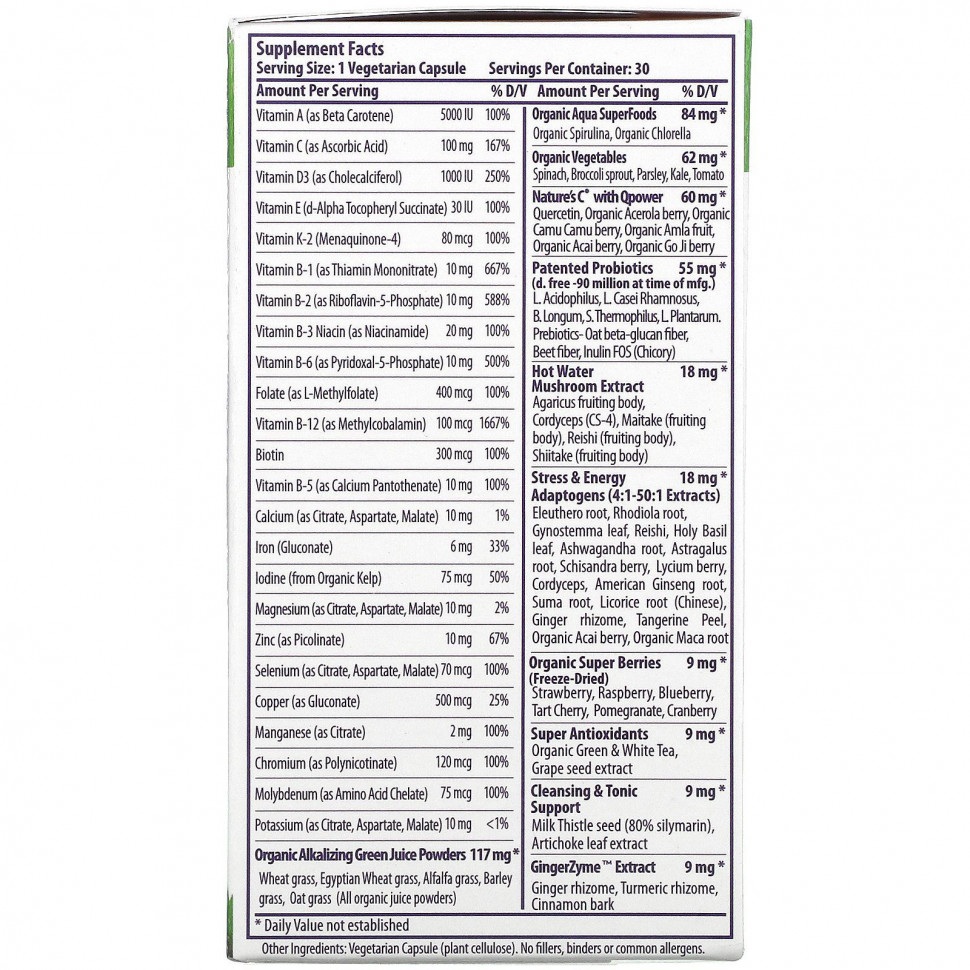 Наша мультивитаминное средство с суперфудами премиум-класса содержит адаптогенные экстракты высочайшего качества из таких растений как родиола, ашваганда, священный базилик, астрагал, лимонник и другие. Эти антистрессовые адаптогены помогают поддерживать уровень энергии, концентрации, жизнеспособность и общее хорошее самочувствие.