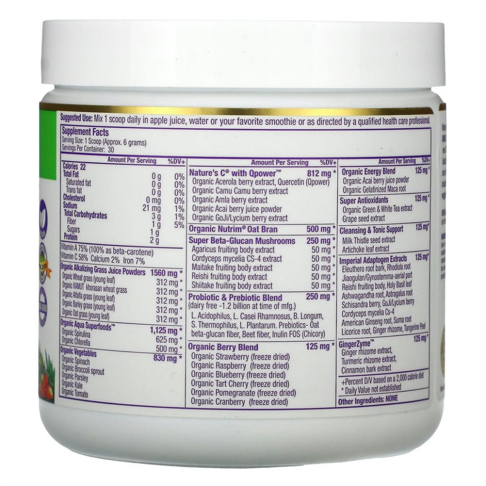 Многие из нас не употребляют в пищу рекомендуемые девять порций фруктов и овощей в день, поэтому ORAC Energy® Greens — это идеальная добавка, обеспечивающая антиоксидантную защиту, которая нам всем необходима. Содержит более 50 ингредиентов, имеет показатель более 40 000 ORAC (адсорбционная емкость по отношению к кислородным радикалам) в одной порции. ORAC-Energy® Greens обеспечивает антиоксидантную силу более чем 24 порций фруктов и овощей в каждой мерной ложке. Наш отмеченный наградами запатентованный состав из зеленых ростков содержит высоко биодоступные, алкализированные порошки соков, смесь водорослей Aqua Superfoods, сублимированные ягоды и овощи, адаптогены, снижающие стресс, пробиотики и многое другое.