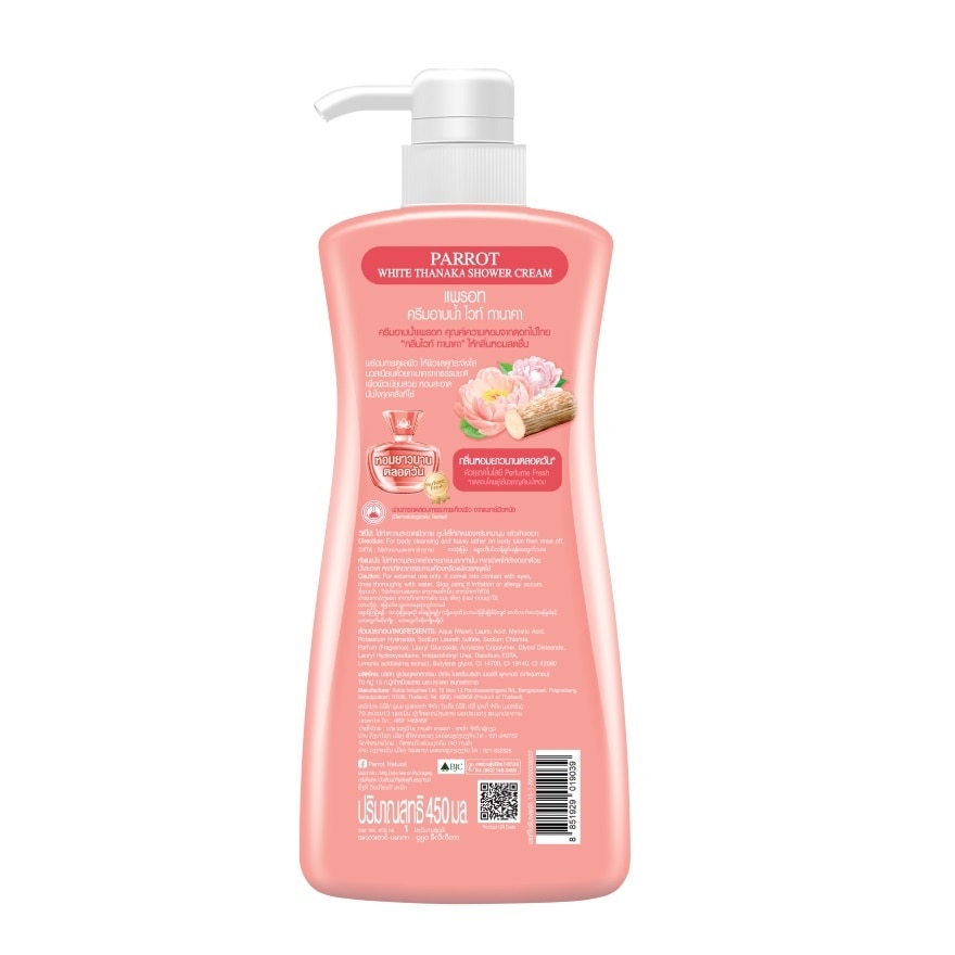 Parrot Botanical Shower Cream Value of fragrance from Thai flowers White Thanaka scent gives a fresh scent with skin care Make your skin clear. Smooth with natural tanaka For smooth, beautiful, fragrant, clean, confident skin every time you use it.