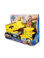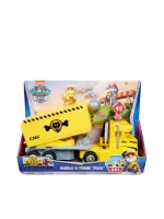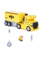 Paw Patrol Rubble X-Tream Truck This PAW PATROL toy truck features epic transformations, like in the show! Disengage the trailer to be in two places at once, for twice the rescue action! COMMAND CENTER MODE: Disengage the trailer and transform into command center mode, to reveal the excavator toy and a retractable crane toy, and other construction toys! LIGHTS AND SOUNDS: Lift up the truck roof to put Rubble in the driver’s seat and press down on the PAW Patrol badge on the roof, to activate the lights, sounds and music from the show! Includes: 1 Rubble X-Treme Truck, 1 Rubble Action Figure, 1 Wrecking Ball, 1 Crane Hook, 1 Sticker Sheet, 1 Instruction Sheet