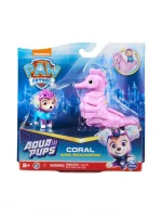 Get ready for exciting rescue adventures on the high seas with your favorite pups, and their new aquatic friends, as they go on exciting rescue missions with the PAW Patrol Aqua Pups This action figures set includes Coral, Skye’s long-lost cousin, with her super-cute mermaid tail and her trusty Seahorse pal! PAW Patrol’s newest pup is ready to jump into action! Attach Coral onto the fin on Seahorse’s back and roll Seahorse forward, to activate her Seahorse’s head-waving movement, as you race to the rescue and save the day! Collect all the PAWsome Aqua Pups figures and toy vehicles, along with the Whale Patroller team vehicle (each sold separately) for endless hours of action-packed adventures