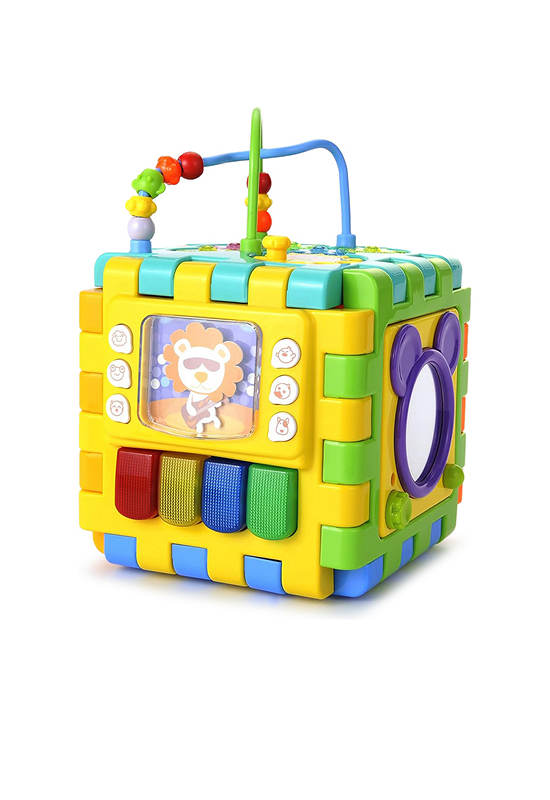 Peppa Pig Actvity Cube. Age range 10+ months. Removable wheels to exercise babies’ hands-on ability and DIY skills. Attractive colors with rotating gears and geometry model that’s fun and interesting to play. Learn to match shapes. Various hands-on activities to strengthen hand-eye coordination. Hands-on, Visual, Operation Ability for your Kids. Functions with Music and Lights.
