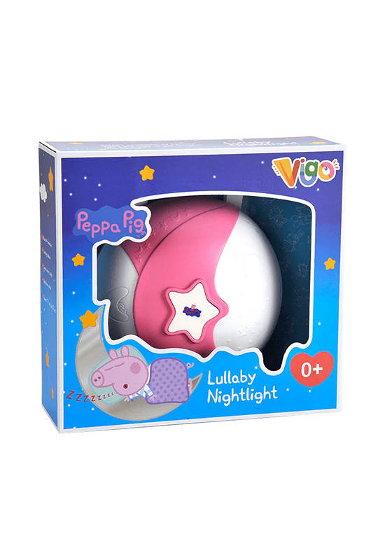 Feature Brand from Peppa Pig Ages 0+ months and above. Vigo toys present the new Peppa Pig Lullaby Nightlight baby toy! Peppa’s countdown to bedtime. Soothe your little one and encourage the only sweetest of dreams with this nightlight. The Peppa Pig Lullaby Nightlight comes with Bluetooth Connection. Soothing Lullabies. Brightness Control! Supports TF and SD Cards!