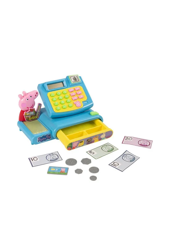 Cash Register Toys from PEPPA PIG All the accessories you need for shopping fun with your friends. Scan the items and listen for the beep, use the working calculator to add up your shopping, and pay using Peppa’s money or bank card using the contactless beep function. The Peppa Pig Cash Register encourages imaginative play, social interaction, and communication and develops numerical skills. Realistic shopping roleplay toy features a beeping scanner, working calculator, money, bank card, and contactless beep.Fun Peppa Pig designs that little fans will love and instantly recognize. Roleplay features encourage imaginative play, social interaction, and communication. Shopping play develops numerical skills.