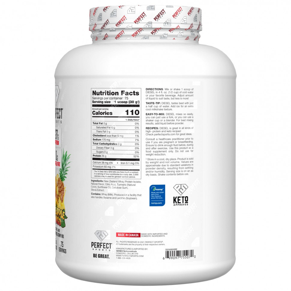 Чистый новозеландский протеин DIESEL содержит только изолят сывороточного протеина, который на 100% производится из новозеландских молочных продуктов. Это молочные продукты, скармливаемые травой и выращенные на пастбищах, и не содержат искусственных гормонов роста (таких как rBST и rBGH).