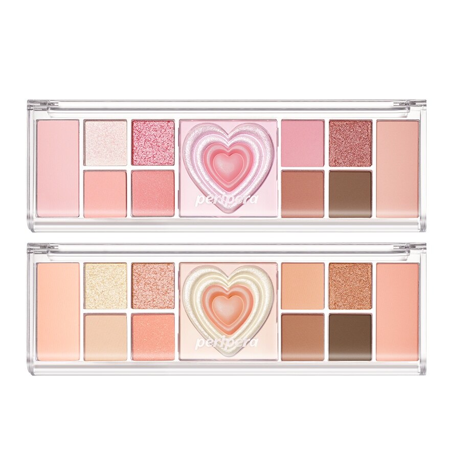 Peripera All Take Mood Like Palette 3 in 1 makeup palette, answers to your makeup needs in one palette. In the palette, there are eyeshadows, blushes, and highlighters. The pigments are tight, don’t fall into powder, and are longlasting. The palette is clearly divided into 2 sides. Whether it’s a light tone that’s suitable for Everyday Look or another dark tone. Add more dimension to your makeup look. The heart shape matches the palette. Blush inside and highlight outside Can be brushed separately to get clear color. Or swipe them together and you’ll get a glowing blush that will make your cheeks look dewy and shiny. 01 PRESTIGE PINK 02 PEACH HEAVEN